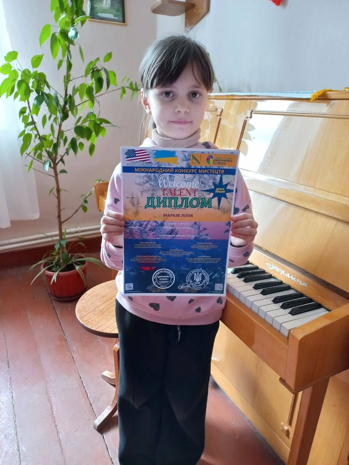 А ще наша юна піаністка брала участь у Міжнародному конкурсі “Top Talents”, де була нагороджена ІІІ премією.