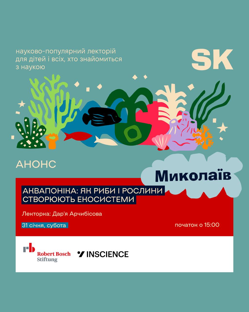 На лекції учасники дізнаються, що таке аквапоніка і чому її вважають однією з найекологічніших технологій вирощування їжі. Поговорять про те, як риби, рослини та корисні бактерії утворюють замкнену живу систему, де відходи одних стають ресурсом для інших.