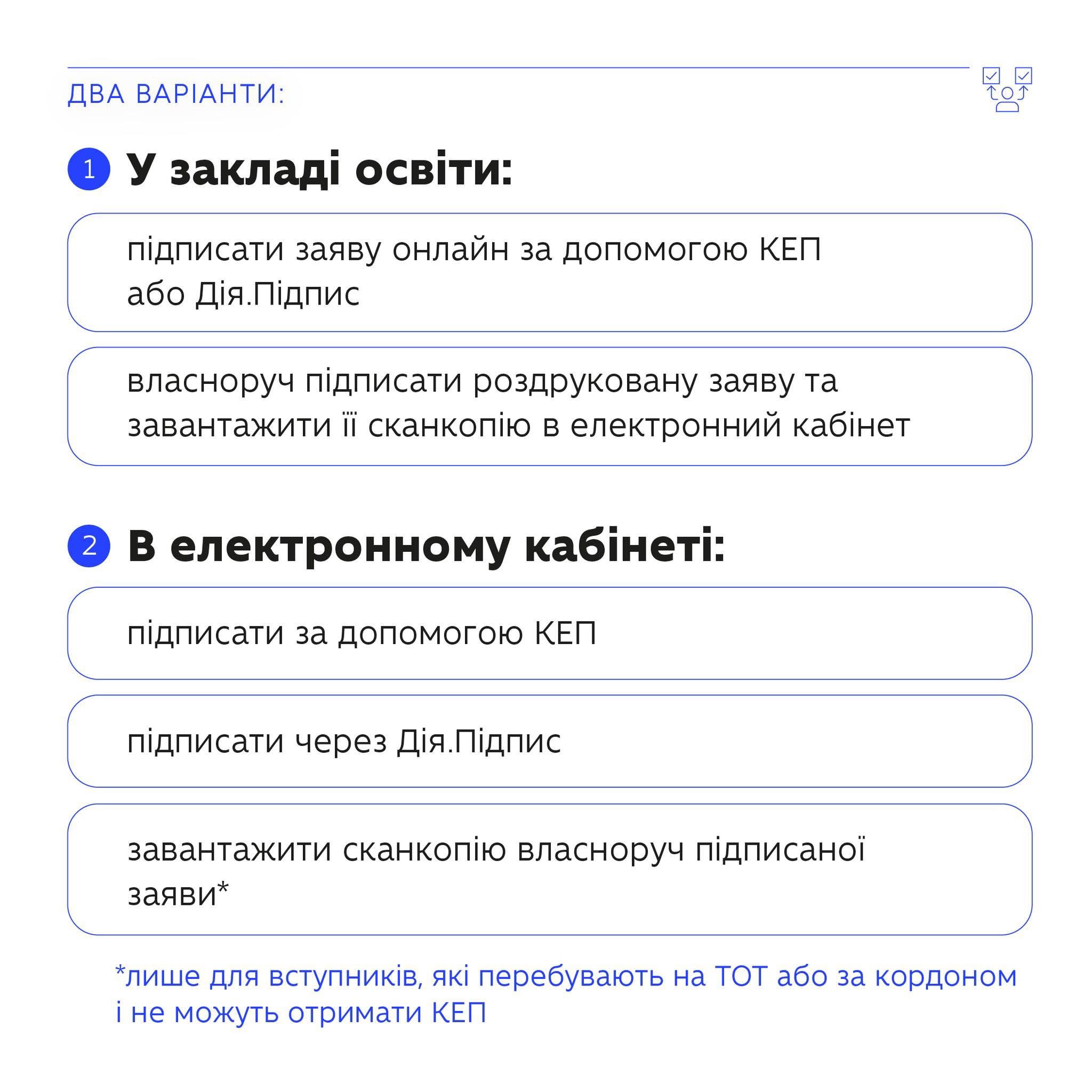 - Завантаження сканкопії заяви: Якщо попередні варіанти незручні, ви можете завантажити відскановану заяву про зарахування.