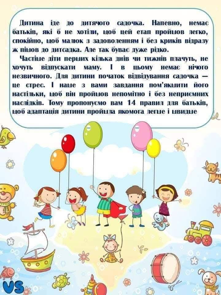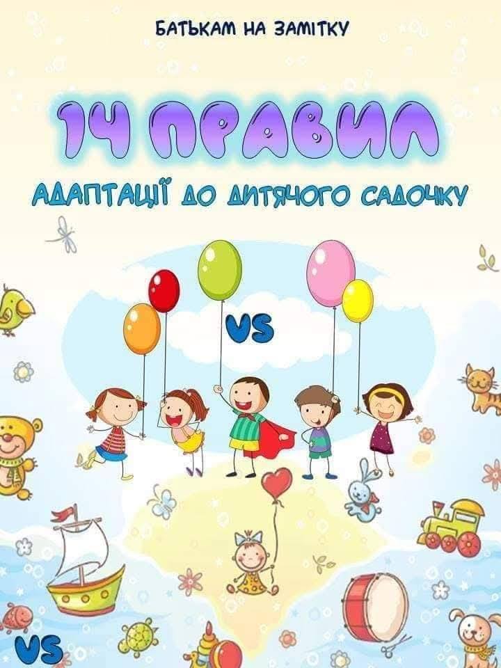 Адаптація до дитячого садочку – досить важлива справа, яка стосується не тільки дітей, вона охоплює всіх учасників цього непростого процесу (батьки + діти +вихователі). Саме завдяки правильно зробленим крокам при вступі до садочку, даний процес може стати менш травматичним та болісним, як для дитини так і для батьків!