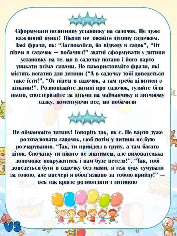 Тому адаптації до ЗДО варто приділяти значну увагу, щоб в подальшому ваша дитина хотіла радісно та з задоволення відвідувати заклад ✨ Тож раджу ознайомитися з рядом рекомендацій, які можуть покращити та полегшити адаптацію малюка 🤗