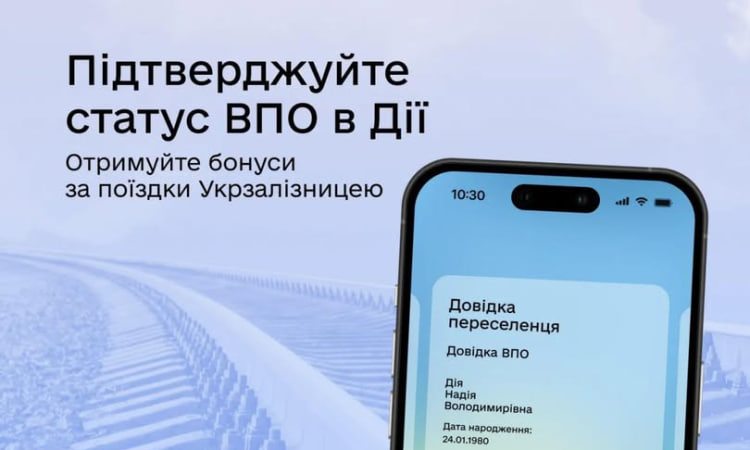 Активно подорожуєте країною? Укрзалізниця разом із Дією розширює програму «Залізні друзі» для ВПО. Підтверджуйте статус внутрішньо переміщеної особи й отримуйте бонуси за кожну поїздку.
