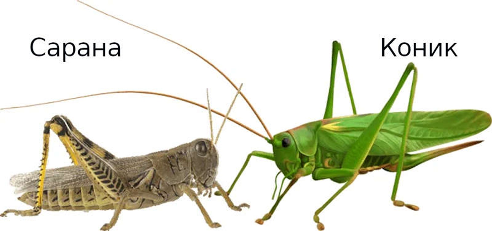 Саранові часто плутають з кониками, які є звичайними представниками місцевої ентомофауни. На відміну від сарани, коники не шкідливі, а переважно корисні, оскільки живляться дрібними комахами і не шкодять посівам. Коники відрізняються від сарани довшими вусиками, стрункішим тілом та зазвичай зеленим кольором. Вони живуть поодинці та не формують зграї.
