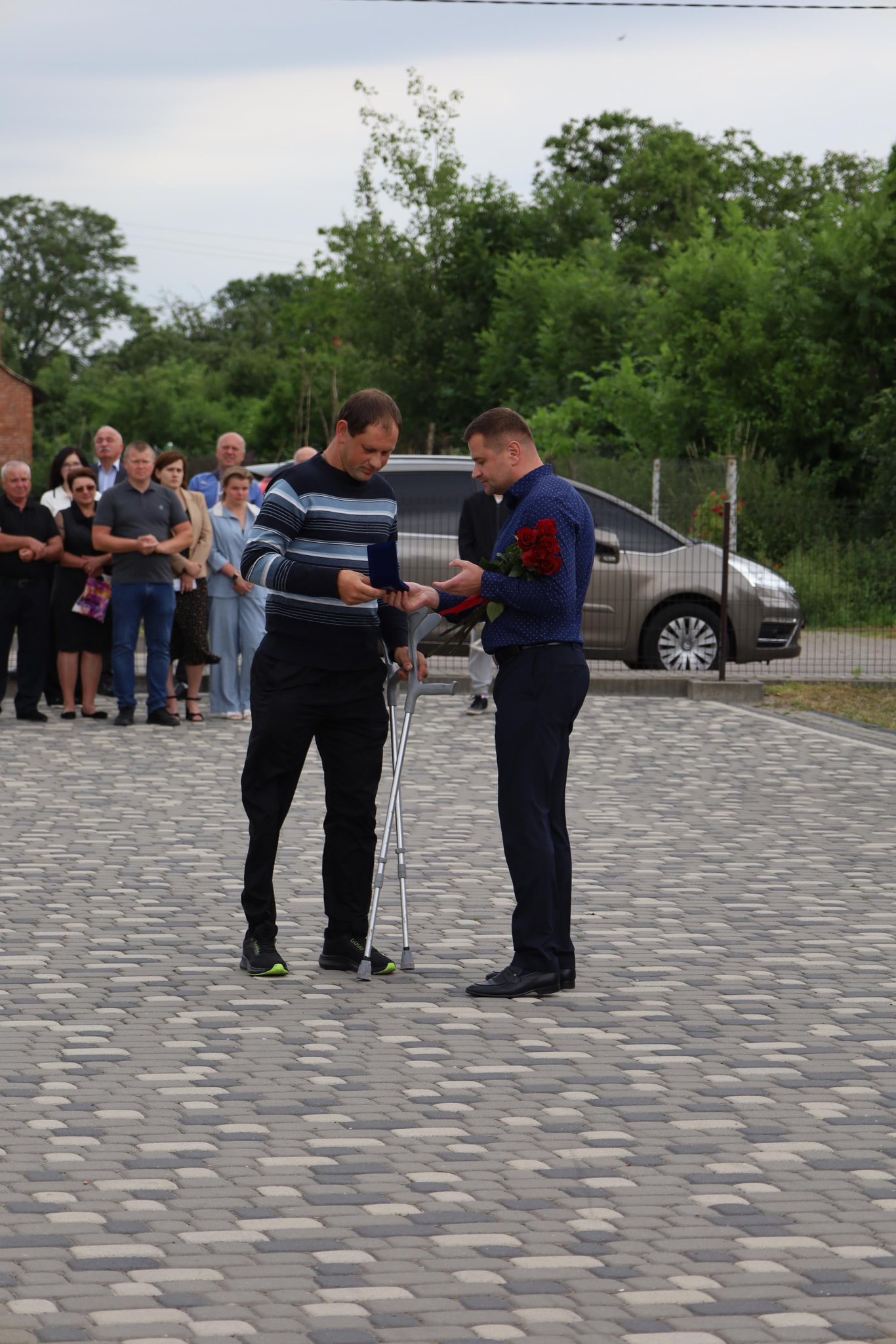 А також відзначив нагрудним знаком захисника Василя Соханя, який отримав важке поранення на фронті.