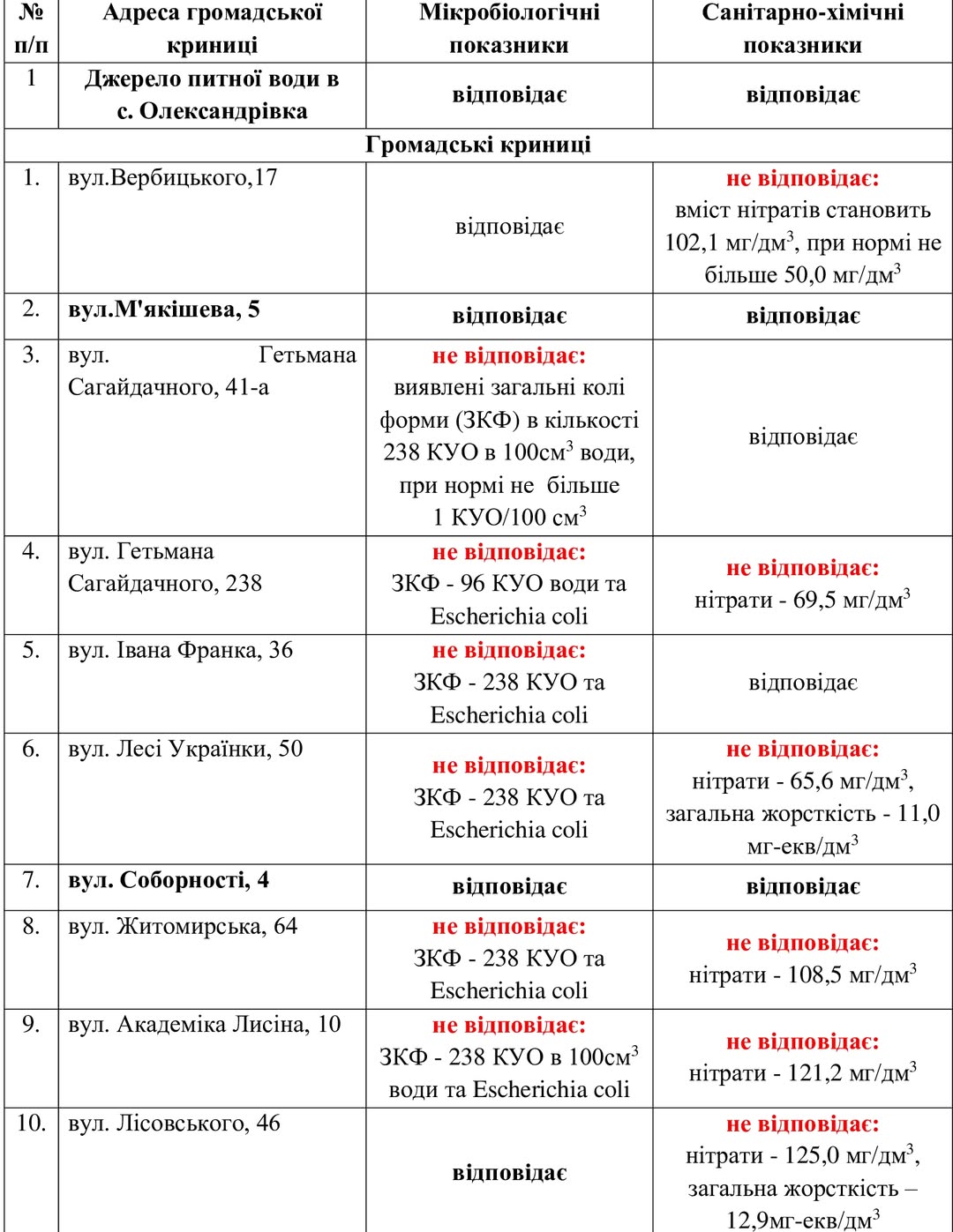 Загалом, позитивні результати щодо деяких ключових джерел у Звягелі та Олександрівці підтверджують ефективність зусиль, спрямованих на захист здоров’я громадян. Це також свідчить про прозорість та відкритість у роботі комунальних служб та установ охорони здоров’я, які регулярно інформують населення про стан водних ресурсів. Детальна інформація про результати аналізів доступна на інфографіці, що додається, що робить дані зрозумілими та доступними для широкого загалу. Забезпечення населення чистою та безпечною водою залишається одним з ключових завдань, що вимагає постійної уваги та інвестицій у модернізацію інфраструктури. Це не тільки питання екології, але й фундамент благополуччя кожної родини в нашому регіоні.