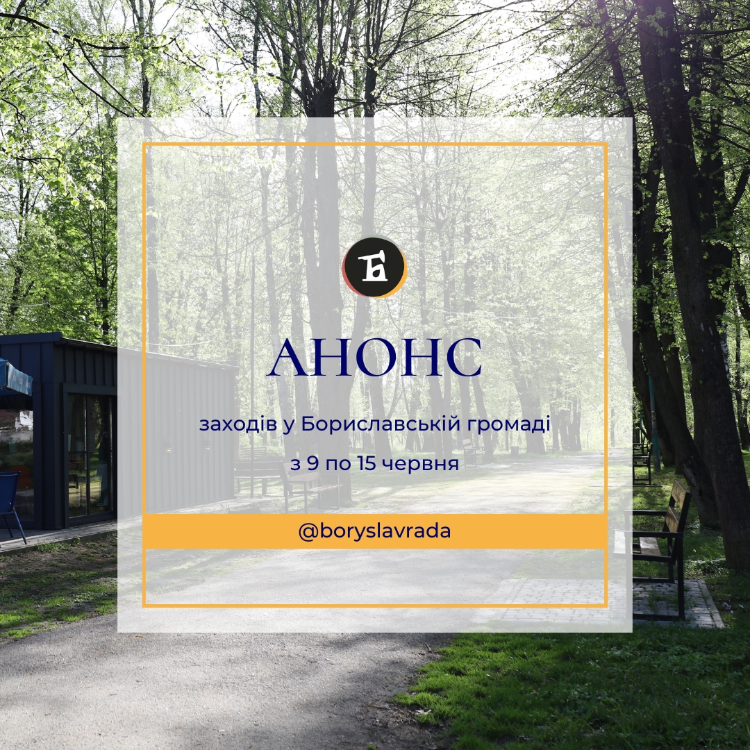 Анонс заходів у Бориславській громаді (09.06.2025 – 15.06.2025)