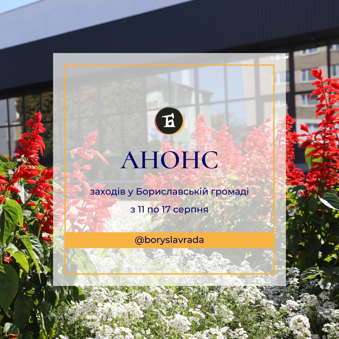 🗓 Анонсуємо про перелік запланованих на цей тиждень заходів у Бориславській міській територіальній громаді.