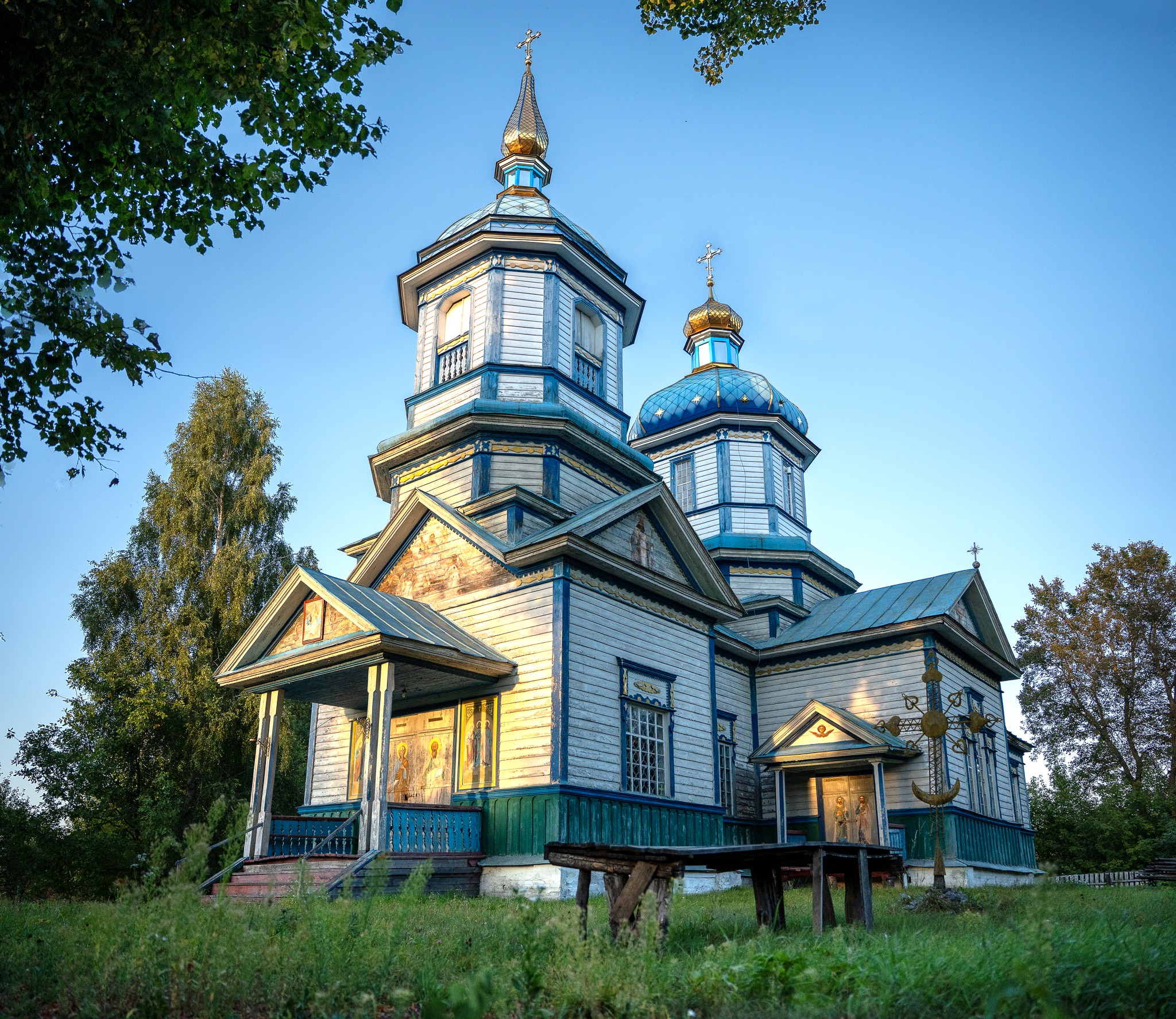 Історія цієї святині сягає глибокої давнини. Сучасний храм, зведений у 1870 році, постав на місці старішої церкви, яка існувала ще з 1643 року. Це вражаючий зразок дерев’яного зодчества: однокупольний хрестоподібний храм, доповнений величною триярусною дзвіницею, що гармонійно доповнює його силует. Особливістю архітектури є наявність північного та південного притворів, кожен з яких має окремий вхід, що надає храму урочистості.