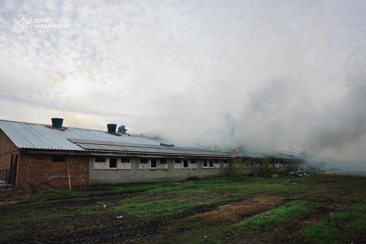 Про це повідомила Державна служба України з надзвичайних ситуацій (ДСНС) у Telegram, документуючи наслідки ворожого удару. Атака спричинила масштабну пожежу, яка охопила вісім приміщень для утримання тварин. Загальна площа пожежі склала 13,6 тис. квадратних метрів, що свідчить про значний обсяг руйнувань.