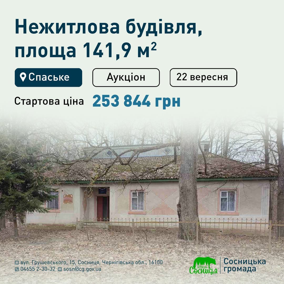 Аукціон: Нежитлова будівля у Спаському, Чернігівщина