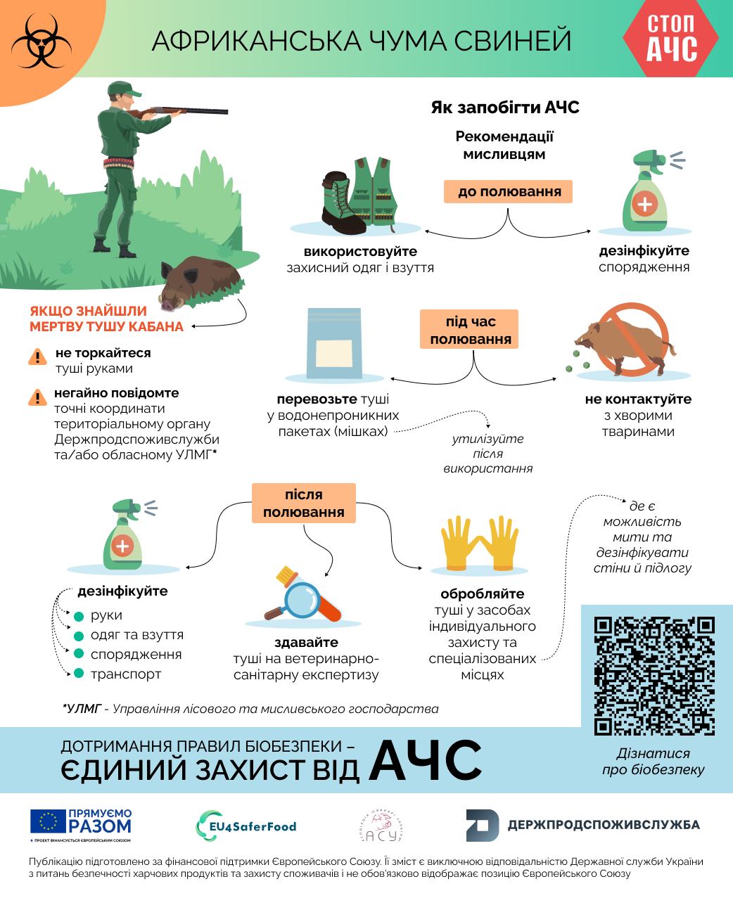 ☝️Закликаємо мисливців бути особливо обережними для недопущення потрапляння вірусу АЧС у місця, з яких можливе його поширення на свиногосподарства!