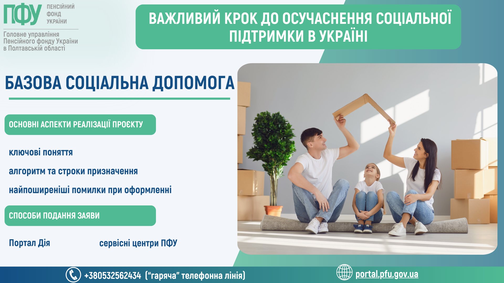 Відповідно до Порядку реалізації експериментального проєкту щодо надання базової соціальної допомоги, затвердженого урядовою постановою від 25 березня 2025 року № 371, з 1 липня 2025 року стартував новий вид фінансової підтримки з боку держави — базова соціальна допомога.