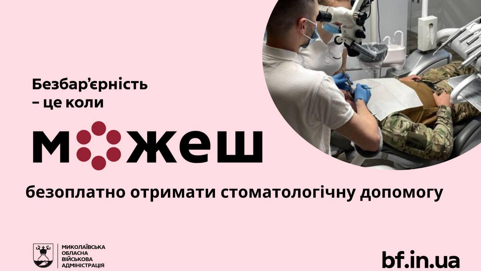 Можливість отримувати необхідні медичні послуги без зайвих перешкод і турбот – один з проявів безбар’єрності. У Миколаївській області для військовослужбовців та ветеранів створені умови, щоб безоплатно лікувати зуби та робити зубопротезування.