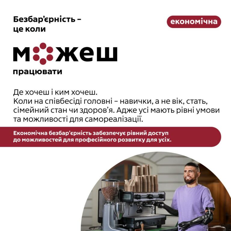 Безбар’єрність – це про гідність і можливості, доступні кожному й кожній. Це коли всі відчувають, що їх чують і що вони є частиною суспільства.