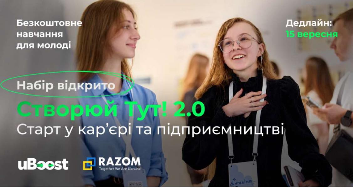 Шукаєте безкоштовну освітню можливість для розвитку? ГО uBoost запрошує молодь України до участі у програмі “Створюй ТУТ! 2.0”. Ця програма є чудовою нагодою для юних українців поглибити свої знання у сфері підприємництва, фінансів, маркетингу, продажів та діджитал-технологій. Окрім того, учасники зможуть розвинути цінні soft & hard навички, які стануть у пригоді в майбутній кар’єрі.