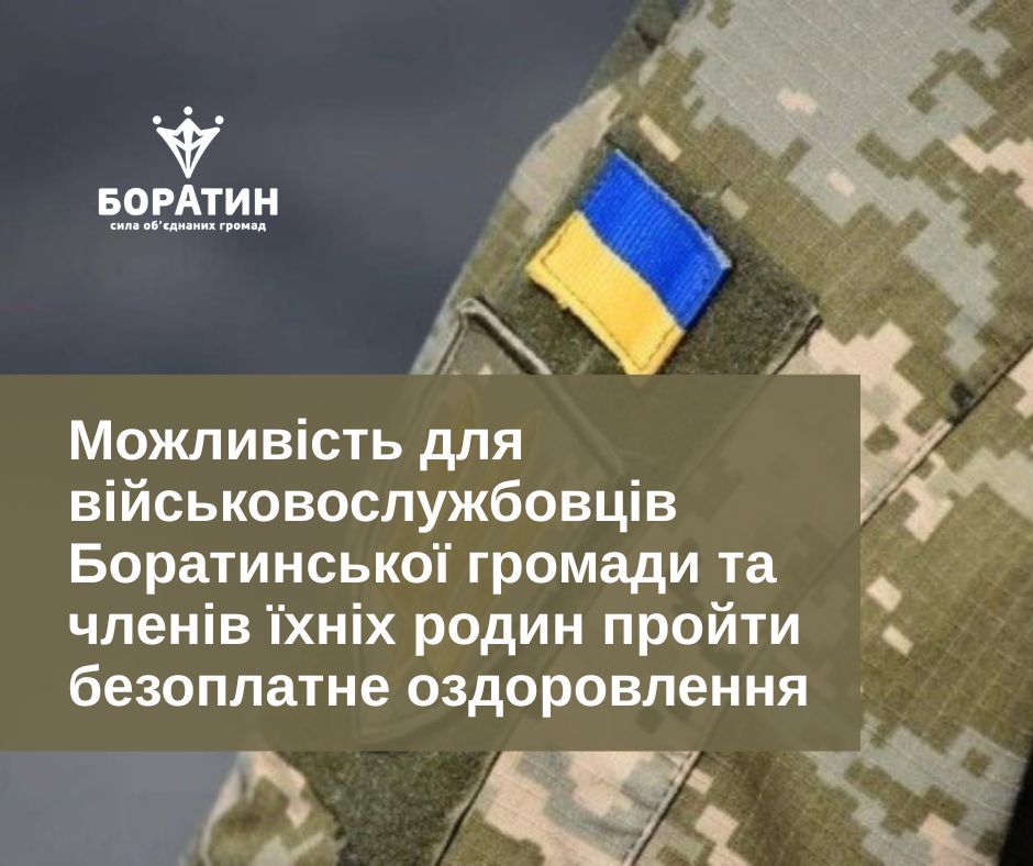 Безоплатне оздоровлення для військовослужбовців Боратинської громади та їхніх родин