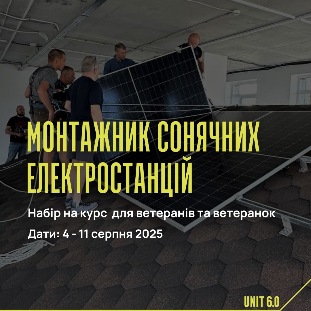 Unit 6.0 відкрив набір на курс «Монтажник сонячних електростанцій» для ветеранів та ветеранок.