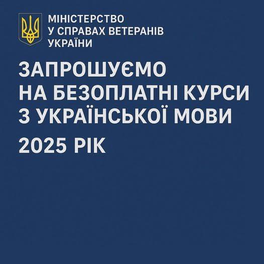 💬 Закликаємо всіх ветеранів та членів їхніх родин скористатися цією можливістю, адже володіння українською мовою – це не лише знання, а й частина нашої національної гідності та єдності.