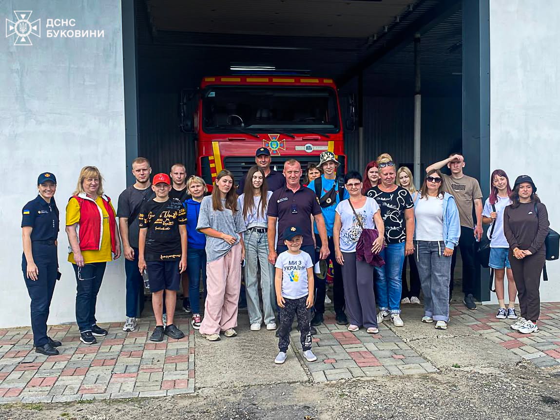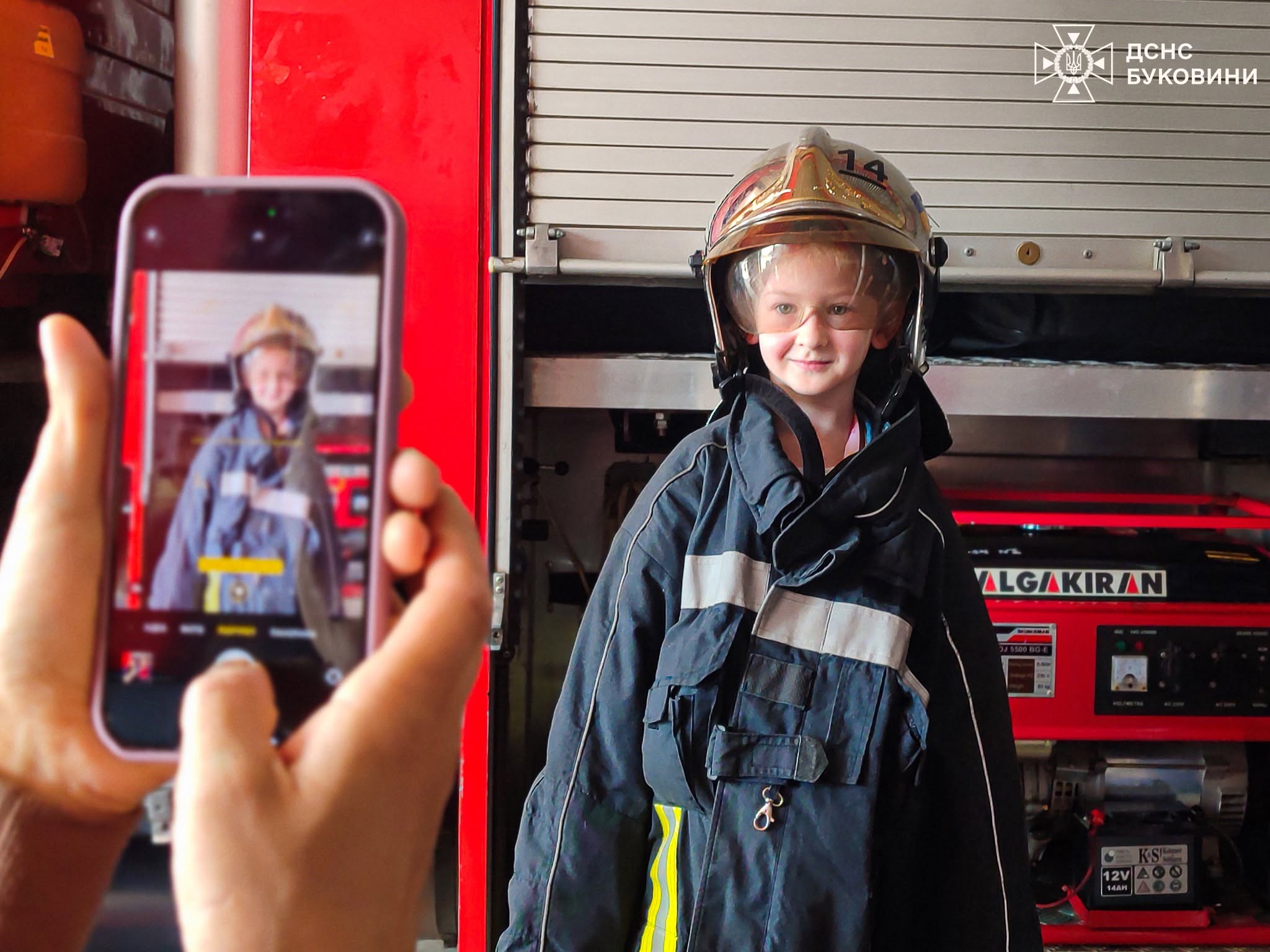 👩🚒 Особливий візит чекав на школярів із Херсонської області та дітей літнього табору у селищі Глибока — там вони побували у справжній пожежно-рятувальній частині, приміряли спорядження та дізналися, як працює команда рятувальників.