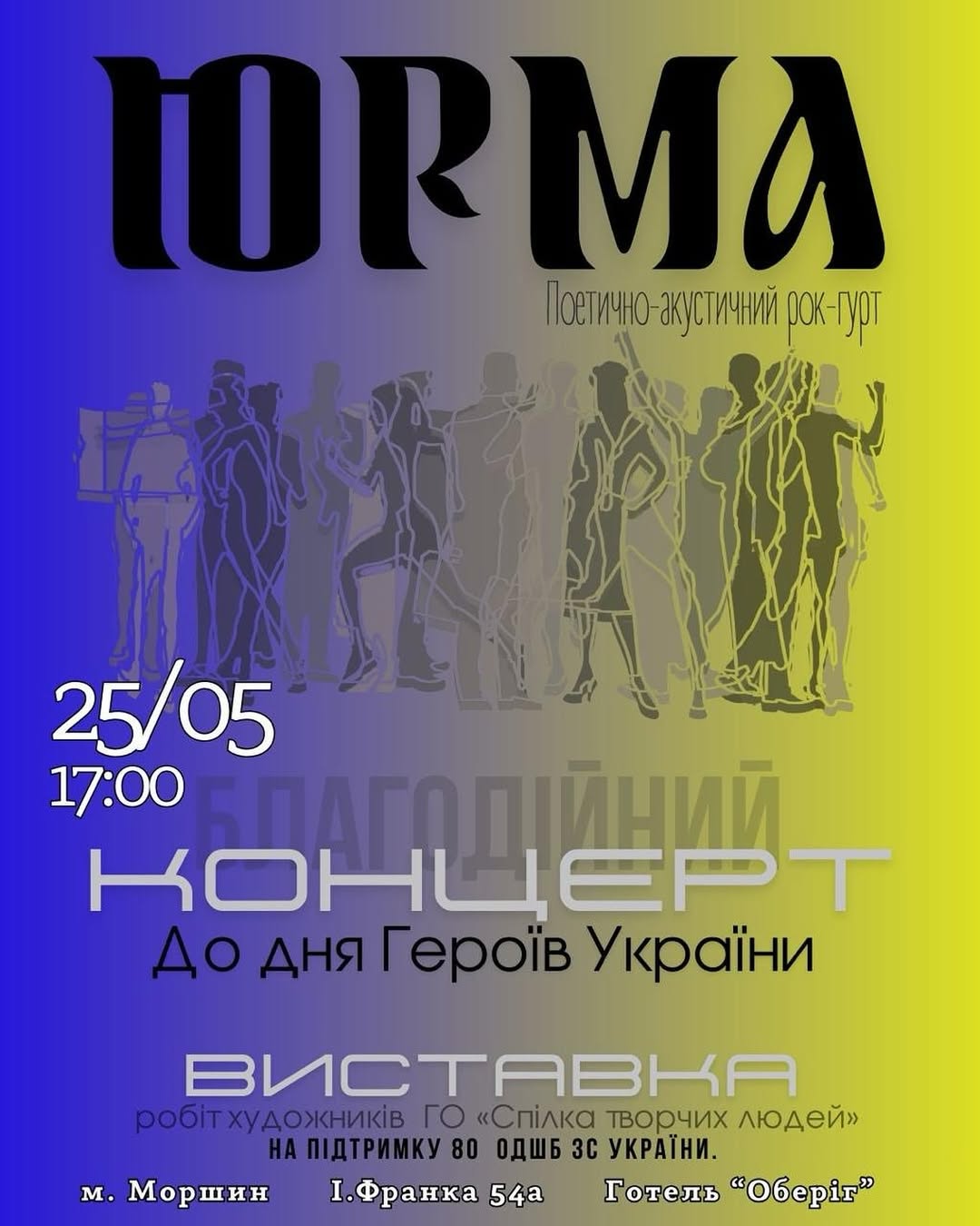 🎶 Запрошуємо на благодійний концерт гурту “ЮРМА” та виставку-продаж у Моршині, присвячені підтримці Збройних Сил України 🇺🇦!