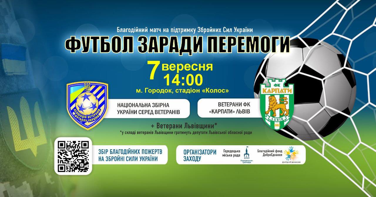 ⚽ На стадіоні «Колос» у місті Городок 7 вересня 2025 року о 14:00 відбудеться грандіозний благодійний футбольний матч під гаслом «Футбол заради Перемоги». Ця подія має на меті об’єднати громаду навколо важливої місії — підтримки наших захисників.