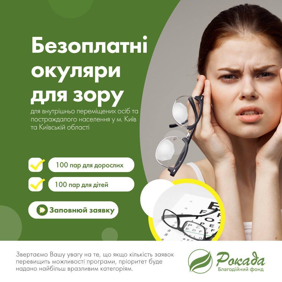 Благодійний фонд «Рокада» розпочинає програму безоплатної видачі окулярів для дітей і дорослих зі статусом ВПО та постраждалому населенню м. Києва та Київської області.