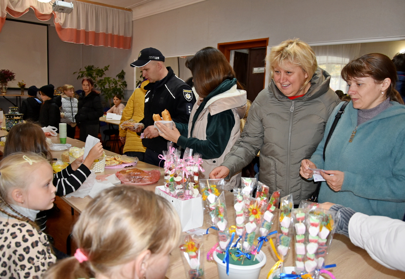 Ярмарок став не лише місцем торгівлі, а й простором, де панувала атмосфера єднання. Гості, учні, батьки та педагоги об’єдналися, щобзробити свій внесок у спільну справу. Загалом було зібрано 5 906 гривень. Особливо зворушливим моментом сталаучасть мам загиблих Героїв, які також зробили свій внесок у благодійну скриньку, підкреслюючи глибокий патріотизм та пам’ять про своїх синів.