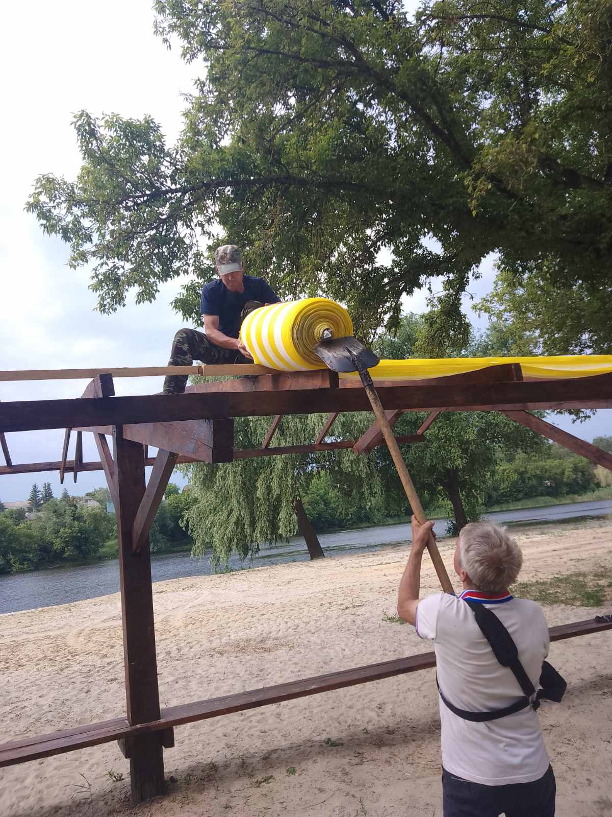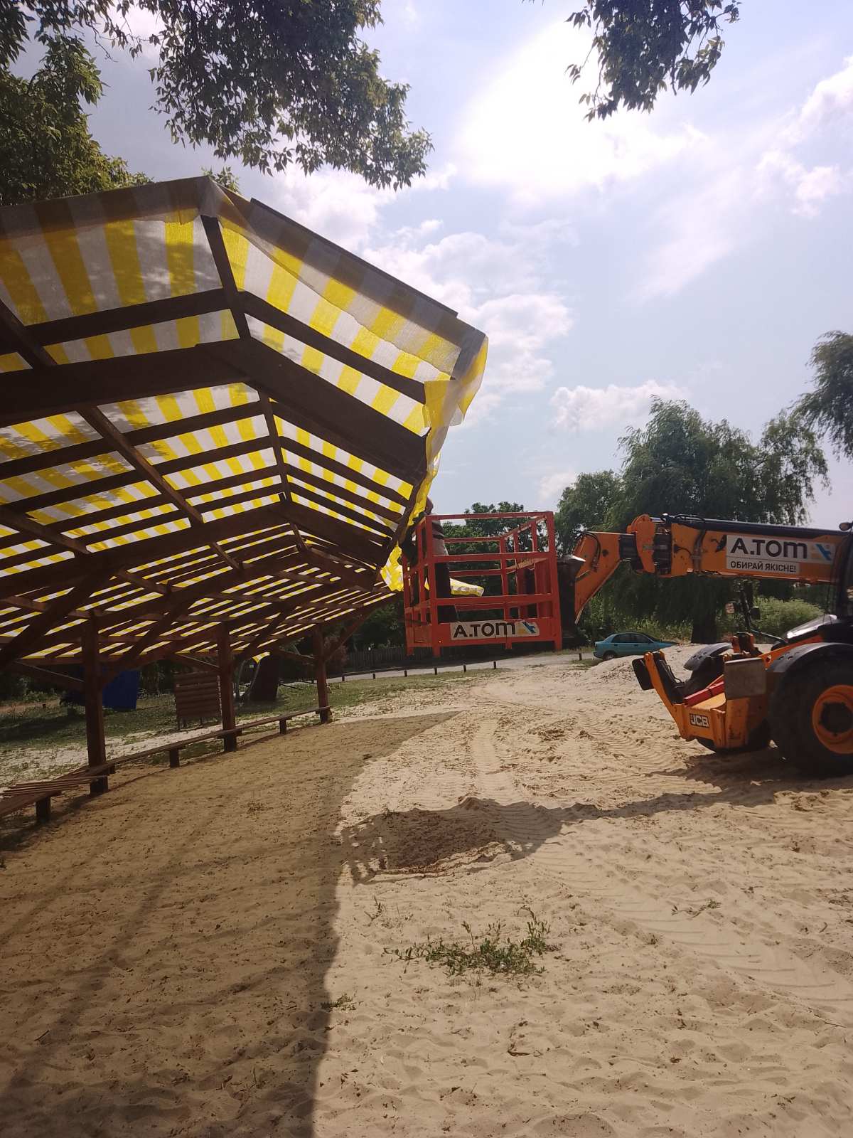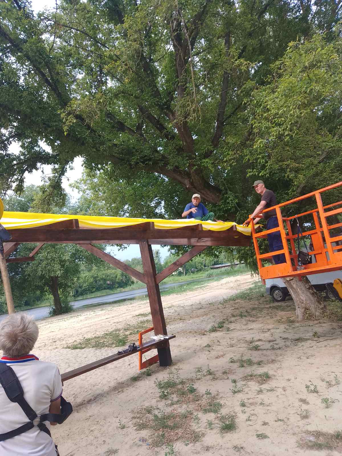 Сьогодні працівники благоустрою відділу ЖКГ та ТБ завершили облаштування накриття від сонця біля зони відпочинку «Міський пляж» на річці Тясмин, поруч зі стадіоном.