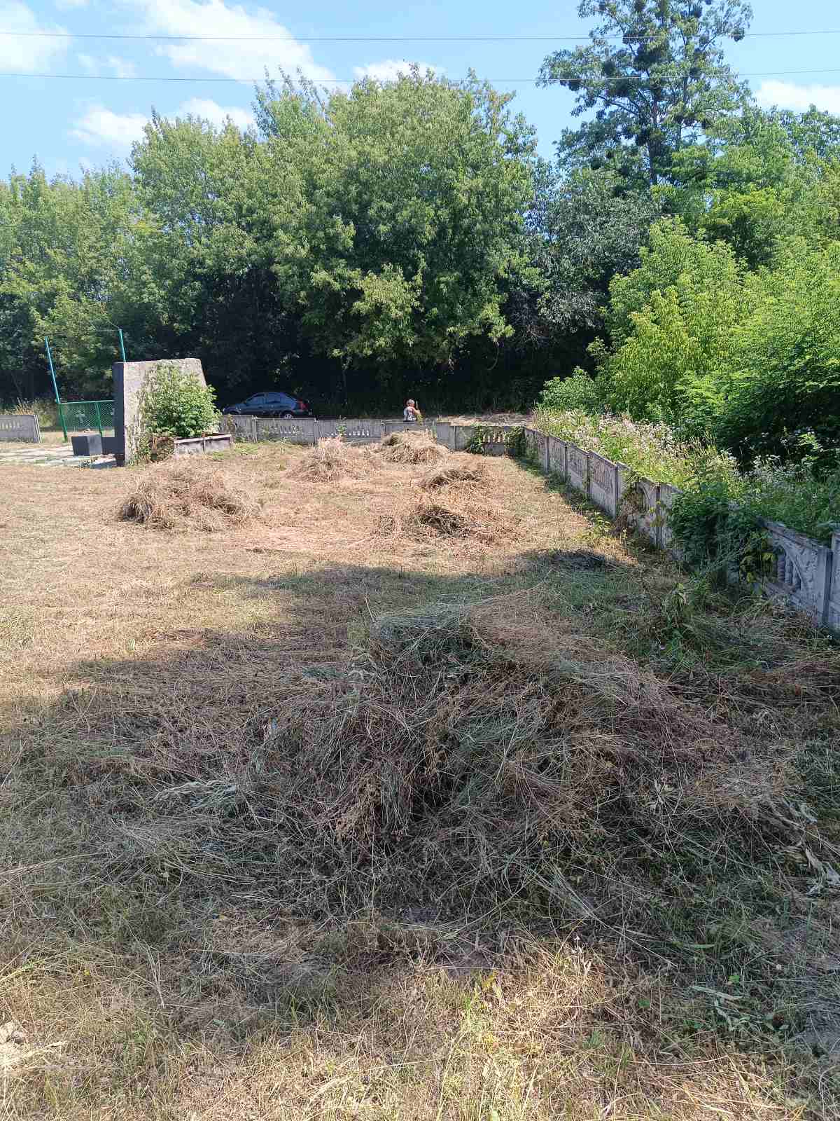 -прибирання скошеної трави на території кладовища с. Балико-Щучинка.