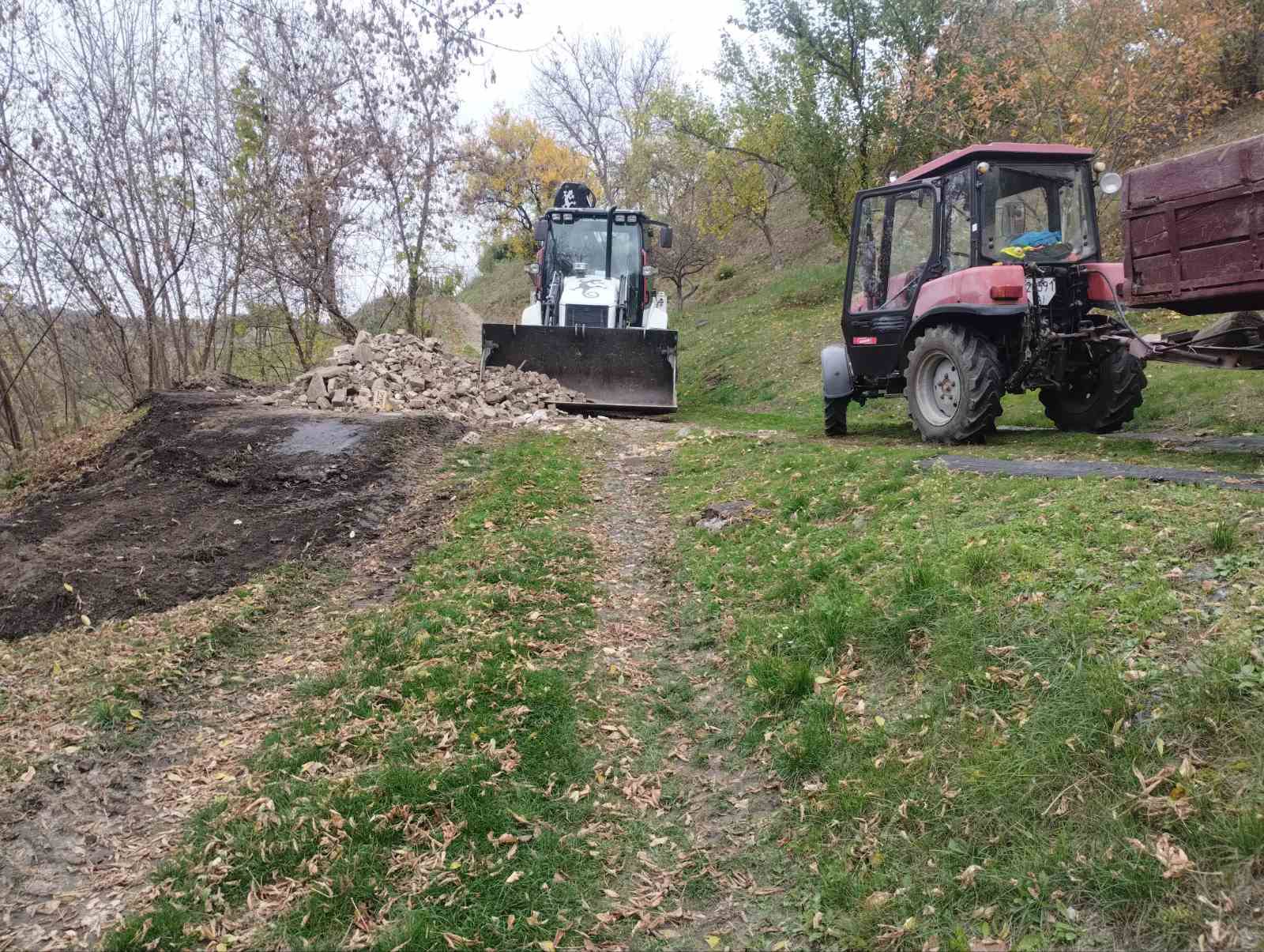 - За допомогою екскаватора здійснювалися роботи із розгортання підсипочних матеріалів на дорозі по вулиці Миколи Леонтовича для забезпечення безпечного проїзду.