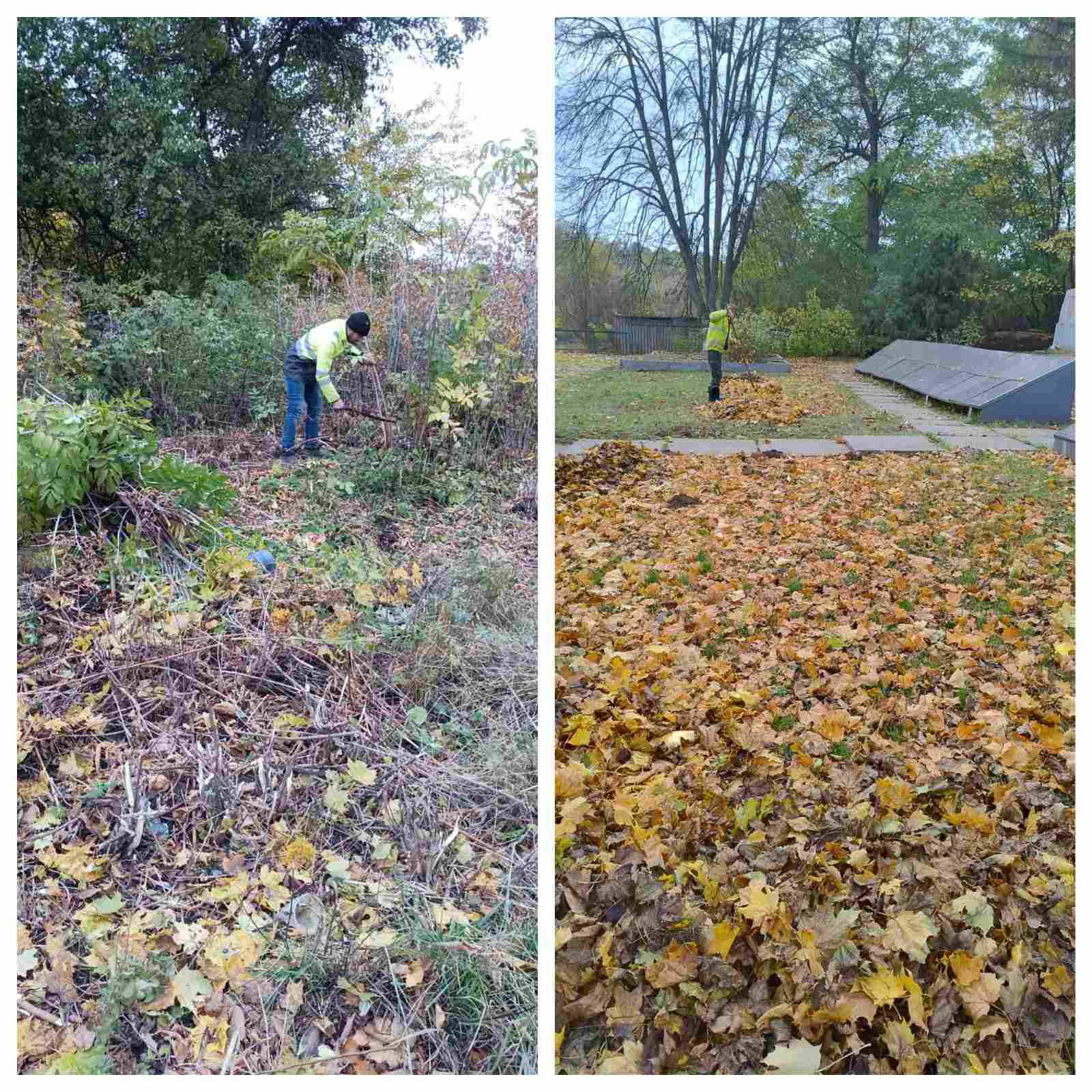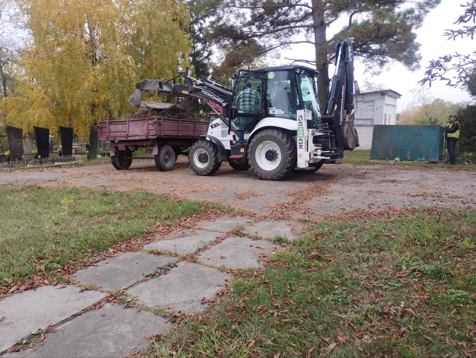 Сьогодні, [Дата], працівники служби благоустрою міста Ржищів та старостинських округів активно працювали над покращенням стану територій. Основні роботи включали прибирання опалого листя, вивезення сміття та підготовку до зимового періоду.
