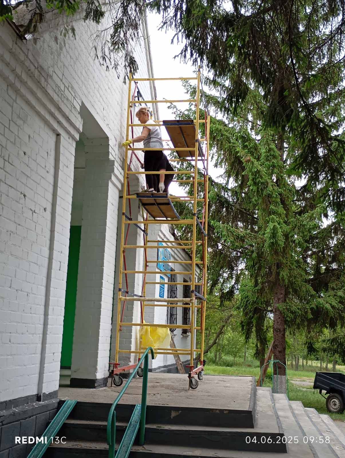 Тривають роботи з благоустрою території! Висловлюю щиру подяку всім працівникам, які долучилися до допомоги в цій важливій справі. Особлива вдячність керівнику ДПТНЗ “Західно-дніпровського центру професійно-технічної освіти” Цигану Віктору Васильовичу за надану допомогу у вигляді будівельних лісів. Завдяки вашій підтримці, ми можемо ефективно та безпечно виконувати роботи з благоустрою.