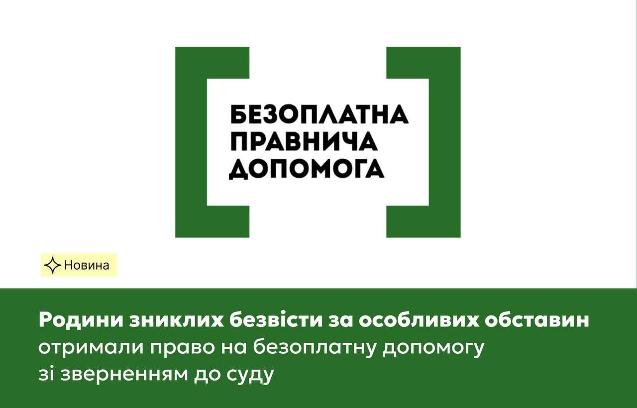 👉 Детальніше про те, чому це важливо, з яких питань можна отримати допомогу та які документи потрібні — в статті на сайті: https://legalaid.gov.ua/novyny/rodyny-znyklyh-bezvisty-za-osoblyvyh-obstavyn-otrymaly-pravo-na-bezoplatnu-dopomogu-zi-zvernennyam-do-sudu/