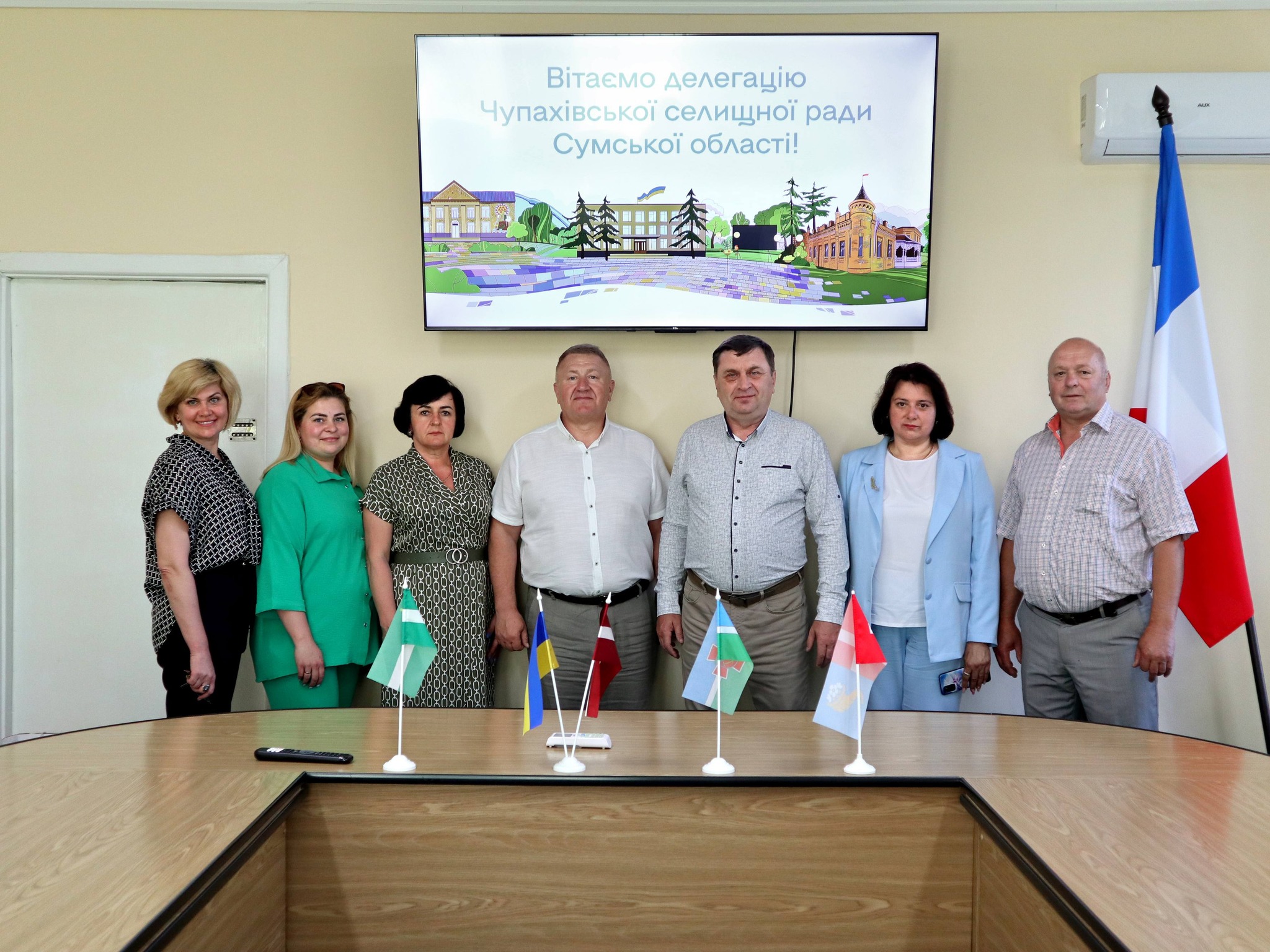 03 червня Бобровицьку громаду відвідала делегація з Чупахівської селищної ради Сумської області. Метою візиту був обмін досвідом та обговорення співпраці між громадами. Голова селищної ради Олександр Кужель очолив делегацію. Геннадій Іванюк, в.о. міського голови, представив Бобровицьку громаду, її досягнення та плани розвитку.