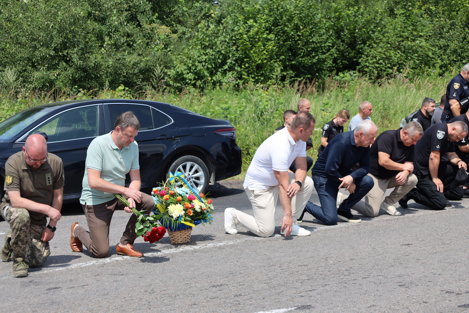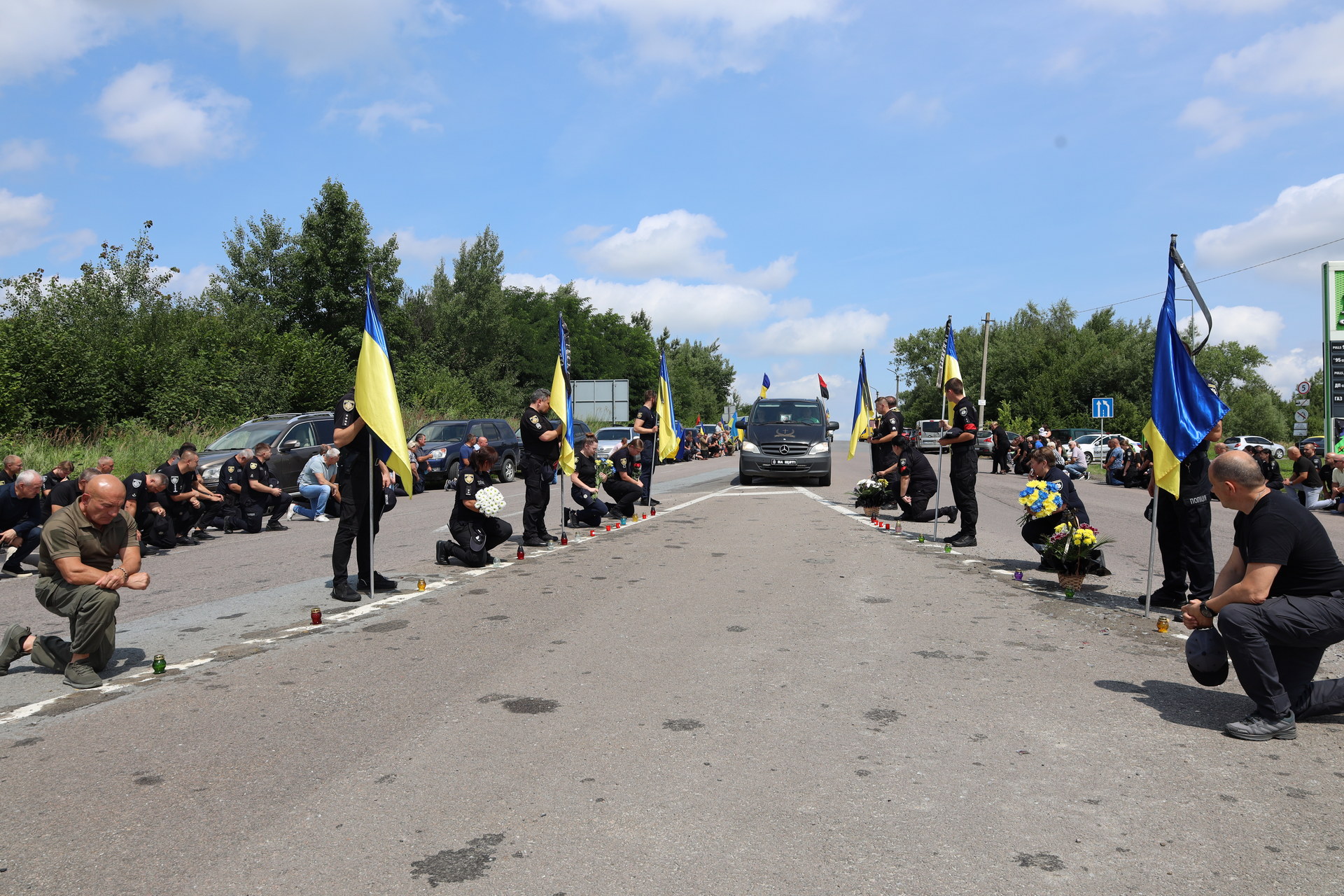 Після панахиди траурна колона вирушила до Борислава, до Поминальної каплиці при парафії Зіслання Святого Духа. Понад 10 службових автомобілів Національної поліції супроводжували процесію, демонструючи повагу до Героя. Цей шлях став вшануванням його відданості обов’язку та служінню народу.