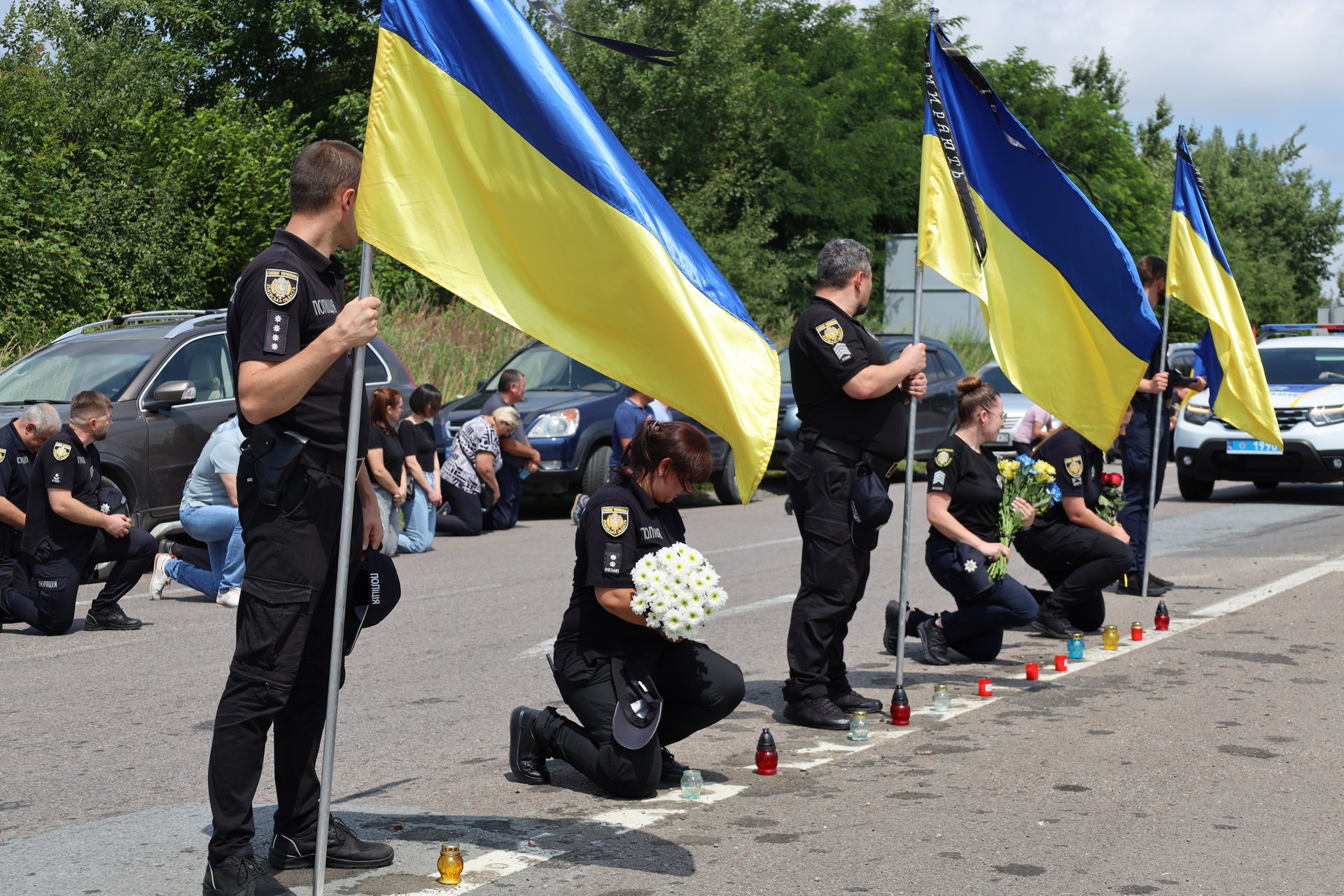 З державними прапорами, квітами та щирою вдячністю, колеги Андрія з Національної поліції України сформували живий коридор. Вони віддали останню шану мужньому воїну, який боровся за свободу України. На Перехресті Героїв відбулася коротка панахида, під час якої присутні звернулися до Господа з молитвою за упокій світлої душі Захисника. Ця церемонія стала символом єднання громади перед обличчям непоправної втрати.