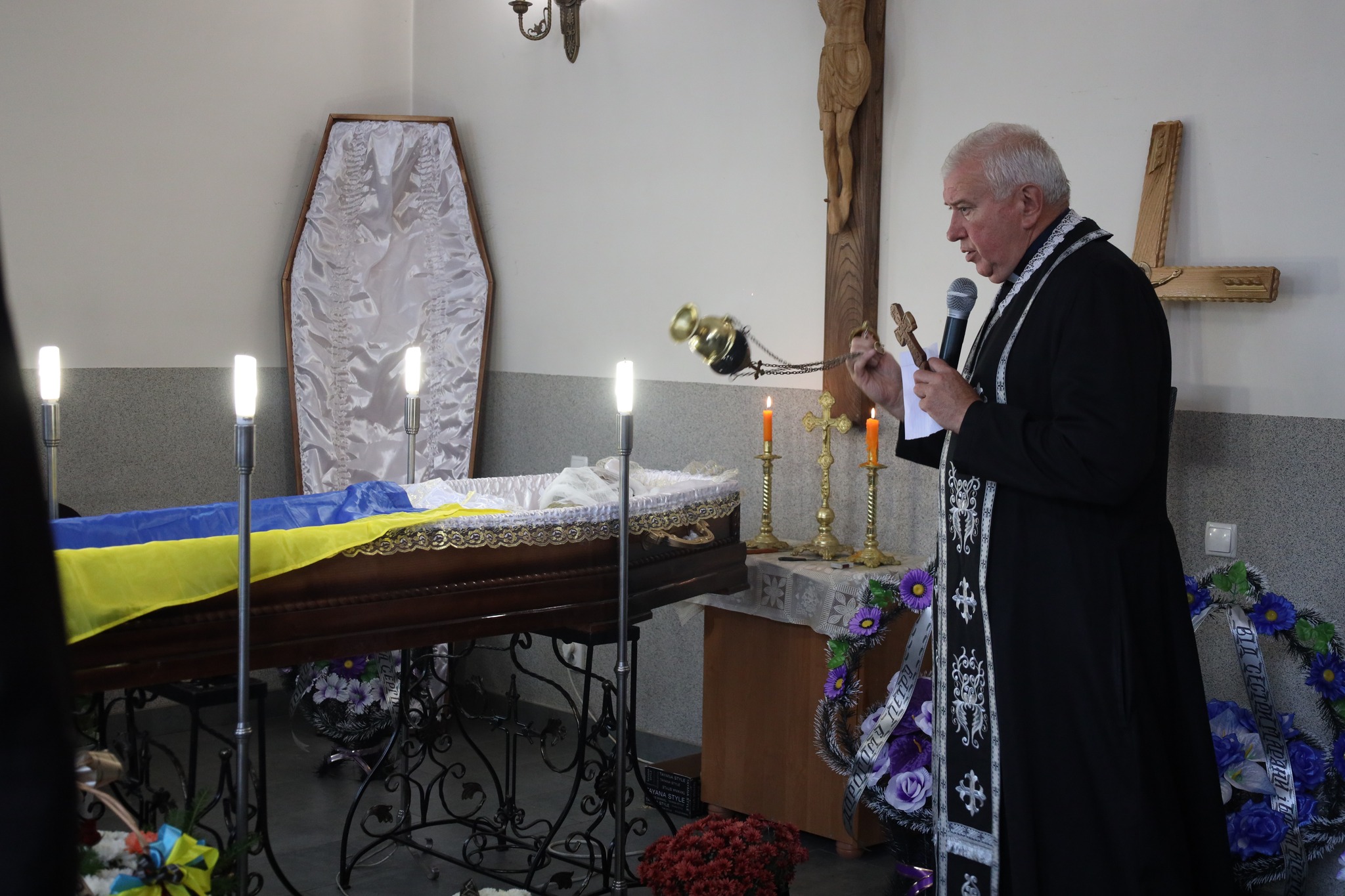 Церемонія прощання відбулася в Богослужбовій каплиці при парафії Зіслання Святого Духа. Сотні людей – рідні, друзі, побратими та небайдужі мешканці громади – прийшли віддати шану полеглому Герою. Під час спільної молитви за упокій душі Петра звучали слова подяки за його самопожертву та боротьбу.
