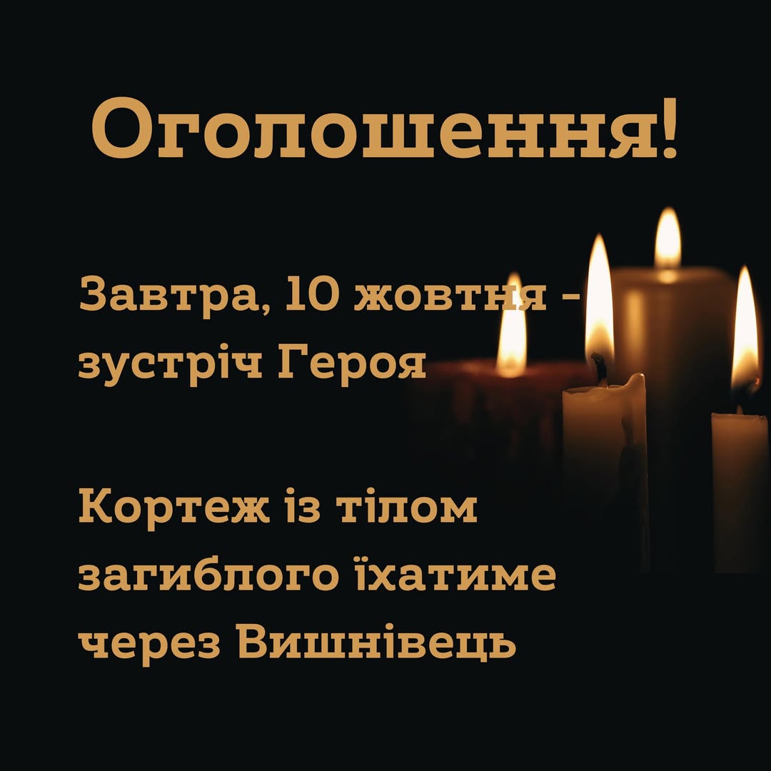 Кортеж із тілом полеглого захисника пройде через Вишнівець, віддаючи шану його службі. Орієнтовно о 11:30 год. відбудеться урочиста панахида біля каплички в селі Борсуки. Це буде момент спільної скорботи та підтримки родини Героя, який віддав найцінніше за мирне майбутнє нашої держави.