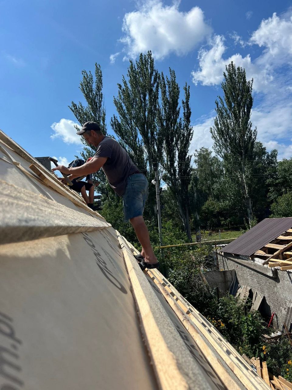 Нещодавно був успішно завершений ще один значний етап робіт: дах будинку багатодітної родини, яка потребувала негайної допомоги, був перекритий сучасною та надійною металочерепицею. Цей крок забезпечить родині безпеку та комфорт.