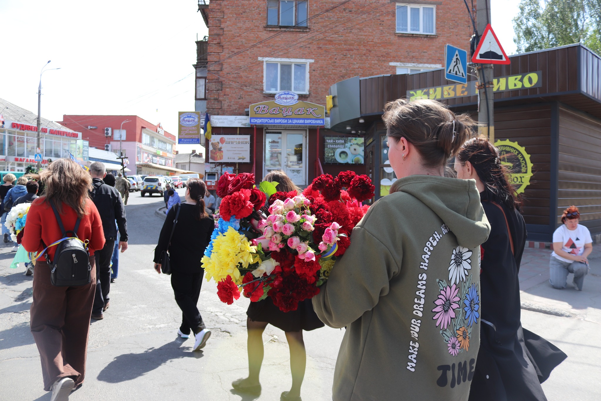 🪻🪻🥀🥀🪖🇺🇦 Бузок, квіти весни та червоні гвоздики на асфальті, жителі Жмеринської громади на колінах, приспущені Державні Прапори України з чорною стрічкою… 4 травня Жмеринка попрощалася з Героєм Олегом Чадюком. 💔🖤