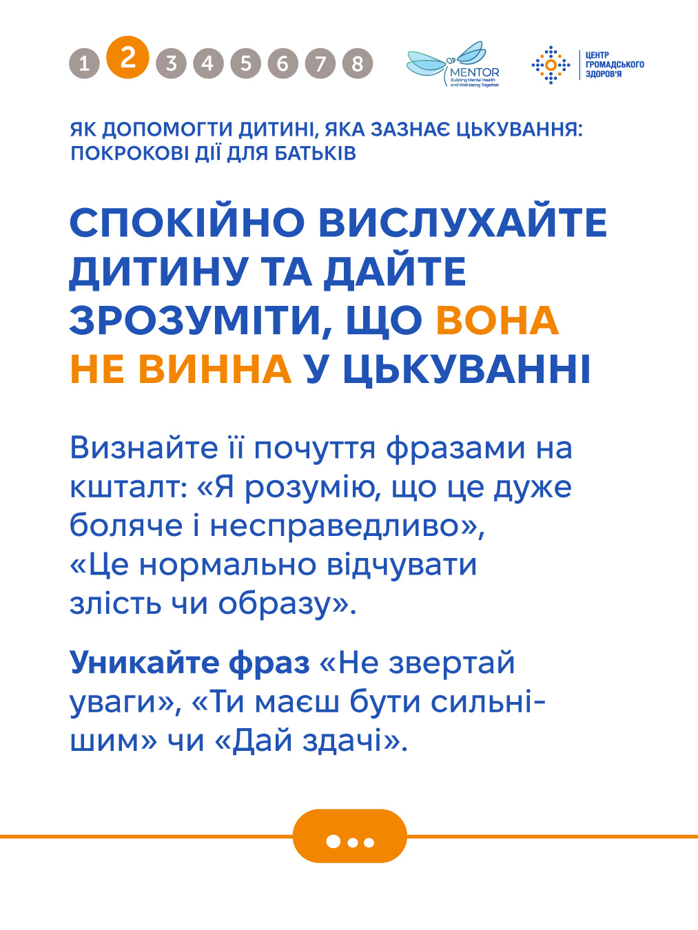 Детальніше про те, як допомогти дитині, яка страждає від булінгу, ви можете дізнатися з наданих інфографік, що містять корисні поради та рекомендації.