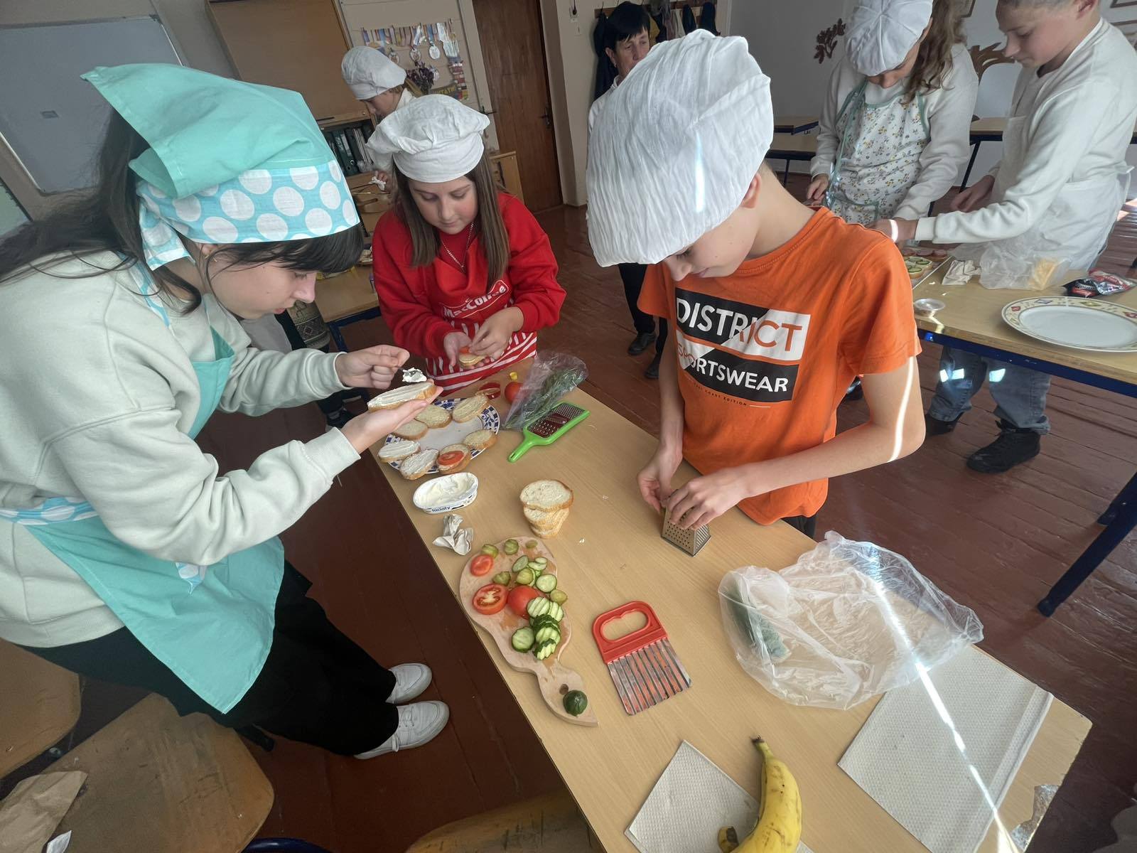 Під керівництвом досвідченого педагога Свінціцької Н.М., учні 6 класу взяли участь у захопливому змаганні. Діти продемонстрували неабияку майстерність, креативність і глибоку любов до кулінарного мистецтва. Кожен учень старанно готував смачні та оригінальні бутерброди, виявляючи винахідливість у поєднанні інгредієнтів та оформленні. Окрім приготування, діти вправно сервірували столи, створюючи справжню атмосферу свята, й упевнено відповідали на різноманітні запитання з кулінарної тематики, показуючи свої знання.