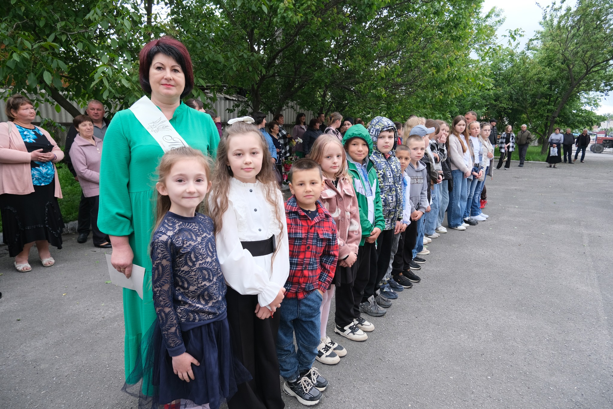 За традицією, ранок розпочався з хвилини мовчання у класі, де випускники разом із класним керівником Наталією Михайлівною Карпиною вшанували героїв, які загинули за Україну. Потім на шкільному подвір’ї відбулася урочиста лінійка. Батьки, тримаючи вишивані рушники над головами своїх дітей, благословили їх на щасливу дорогу.