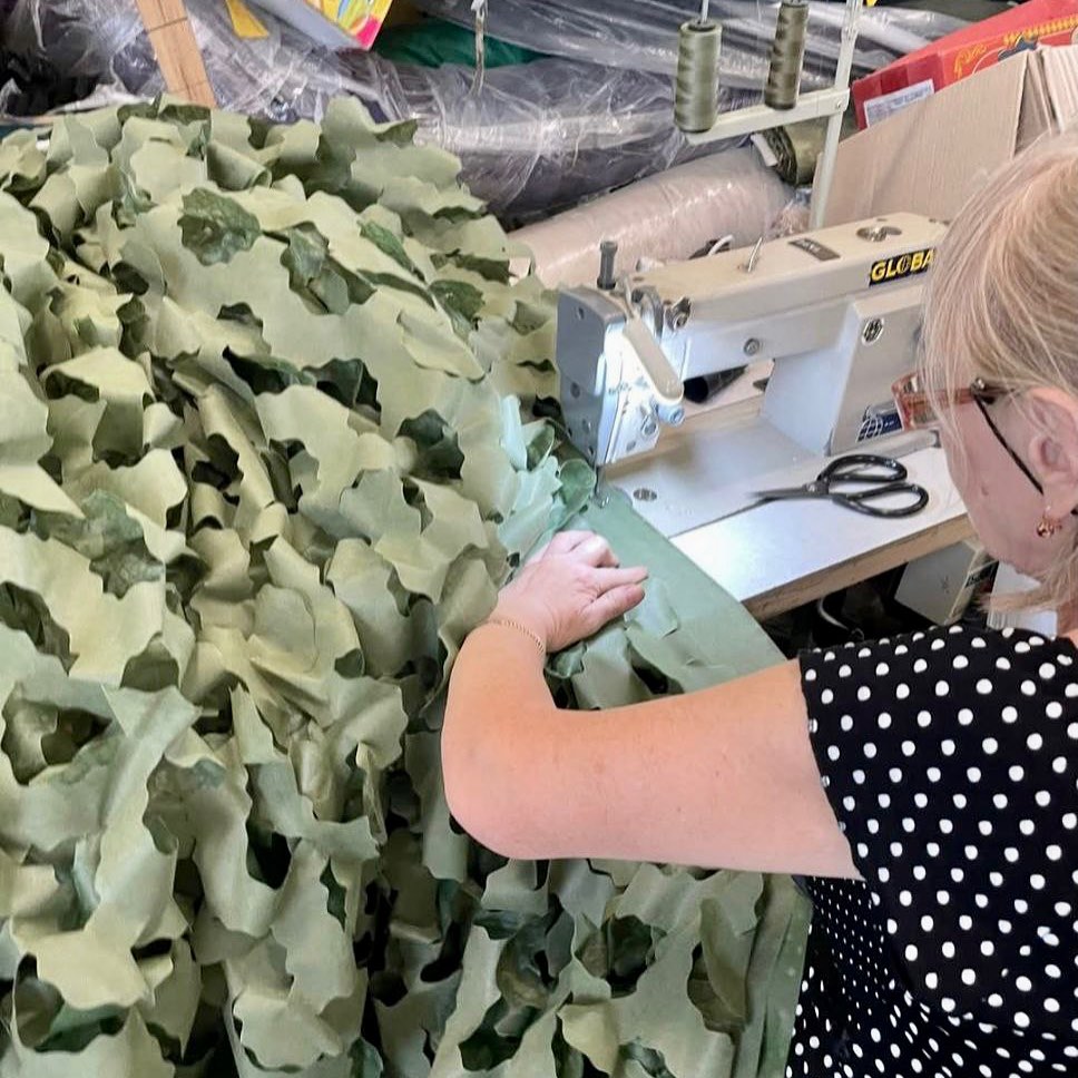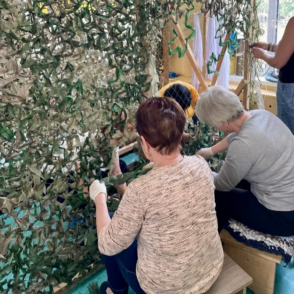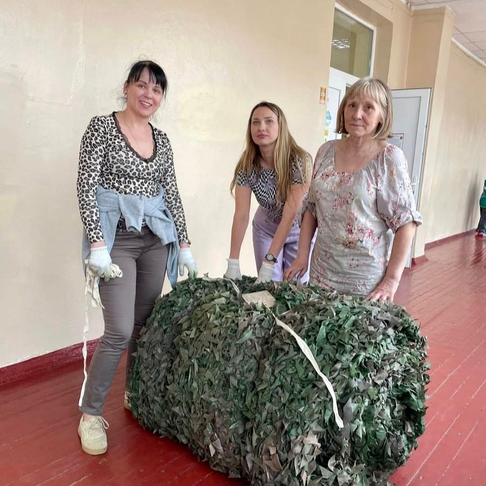 Небайдужі жителі громади щодня плетуть маскувальні сітки для наших захисників. Щомісяця волонтери виготовляють близько 800 квадратних метрів сіток, а також створюють окопні свічки, маскувальні костюми та інше спорядження для фронту.
