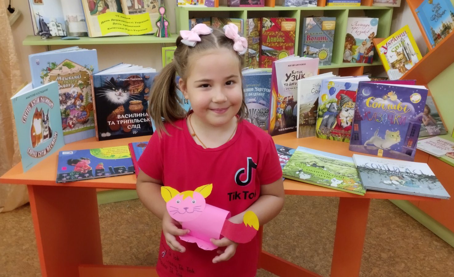 У відділі обслуговування дітей та юнацтва Публічної бібліотеки бібліотекарки представили книжкову виставку «Веселий Мур-Няв», провели ігровий кото-релакс «Мур-Няв» та майстер-клас, на якому діти з кольорового паперу виготовили котика.