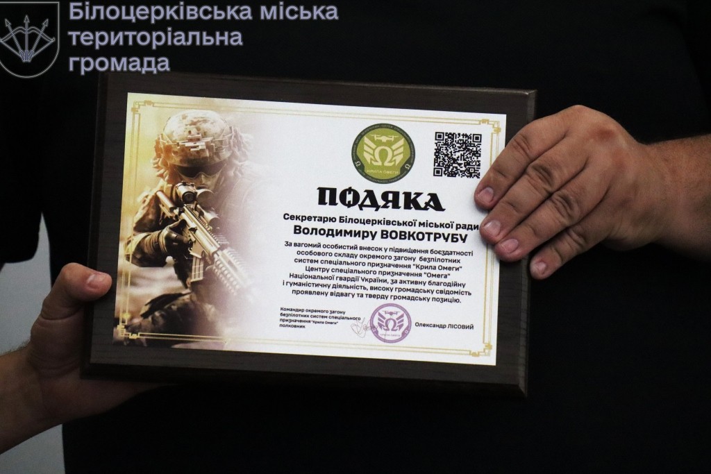 💪 📜 Білоцерківська громада отримала визначну Подяку від особового складу окремого загону безпілотних систем «Крила Омеги», що входить до Центру спеціального призначення «Омега» Національної гвардії України. Це свідчить про високий рівень взаємодії та підтримки між цивільним населенням та військовими, які боронять нашу країну.