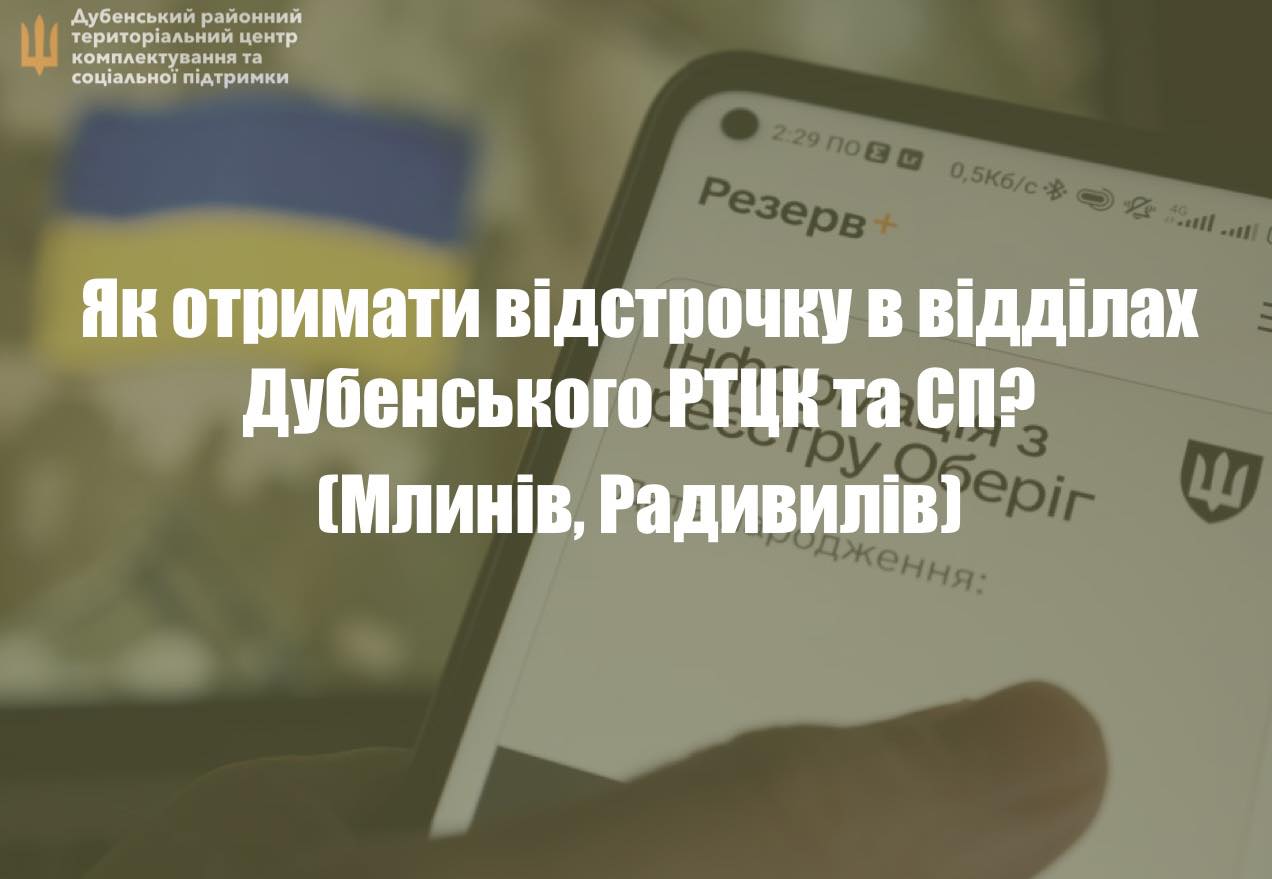 З 8 серпня 2025 року розпочато поновлення відстрочок від мобілізації відповідно до Постанови КМУ № 560, для військовозобов’язаних, які перебувають на військовому обліку у Першому та Другому відділах Дубенського РТЦК та СП.