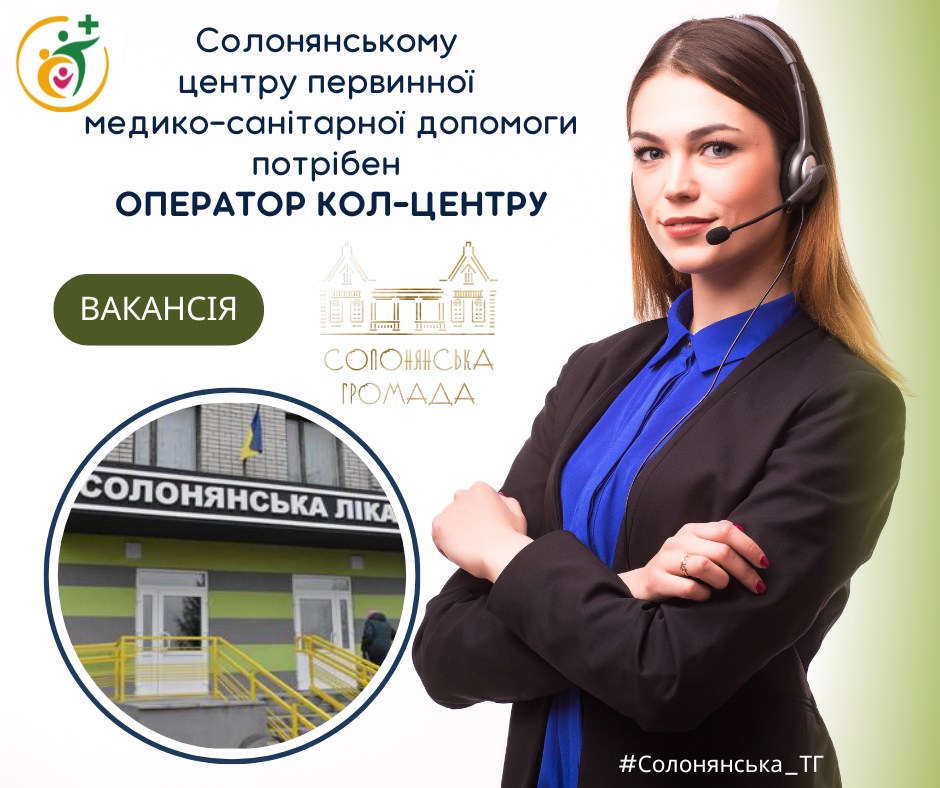 ℹ КНП «Солонянський центр первинної медико-санітарної допомоги» оголошує про наявність вакантної посади медичного реєстратора (оператора) кол-центру.