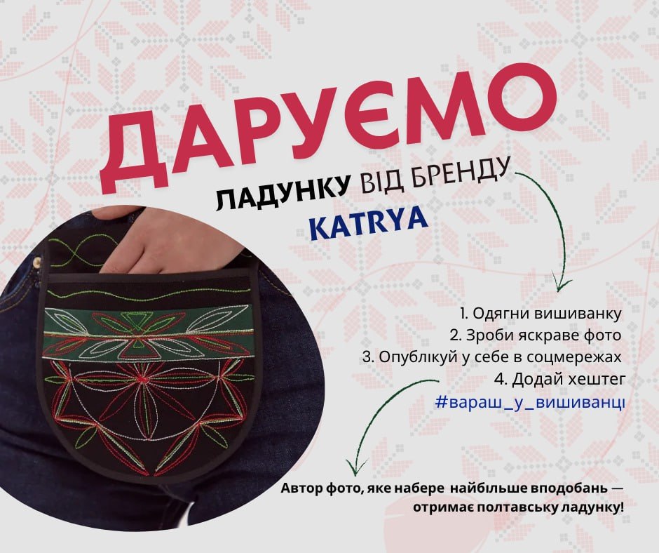 Фото, яке набере найбільшу кількість вподобань, стане переможцем та отримає чудовий подарунок – полтавську ладунку від відомого українського бренду традиційного одягу Katrya. Ладунка – це не лише стильний аксесуар, але й символ української культури та майстерності. Тож не проґавте свій шанс отримати цей унікальний подарунок!