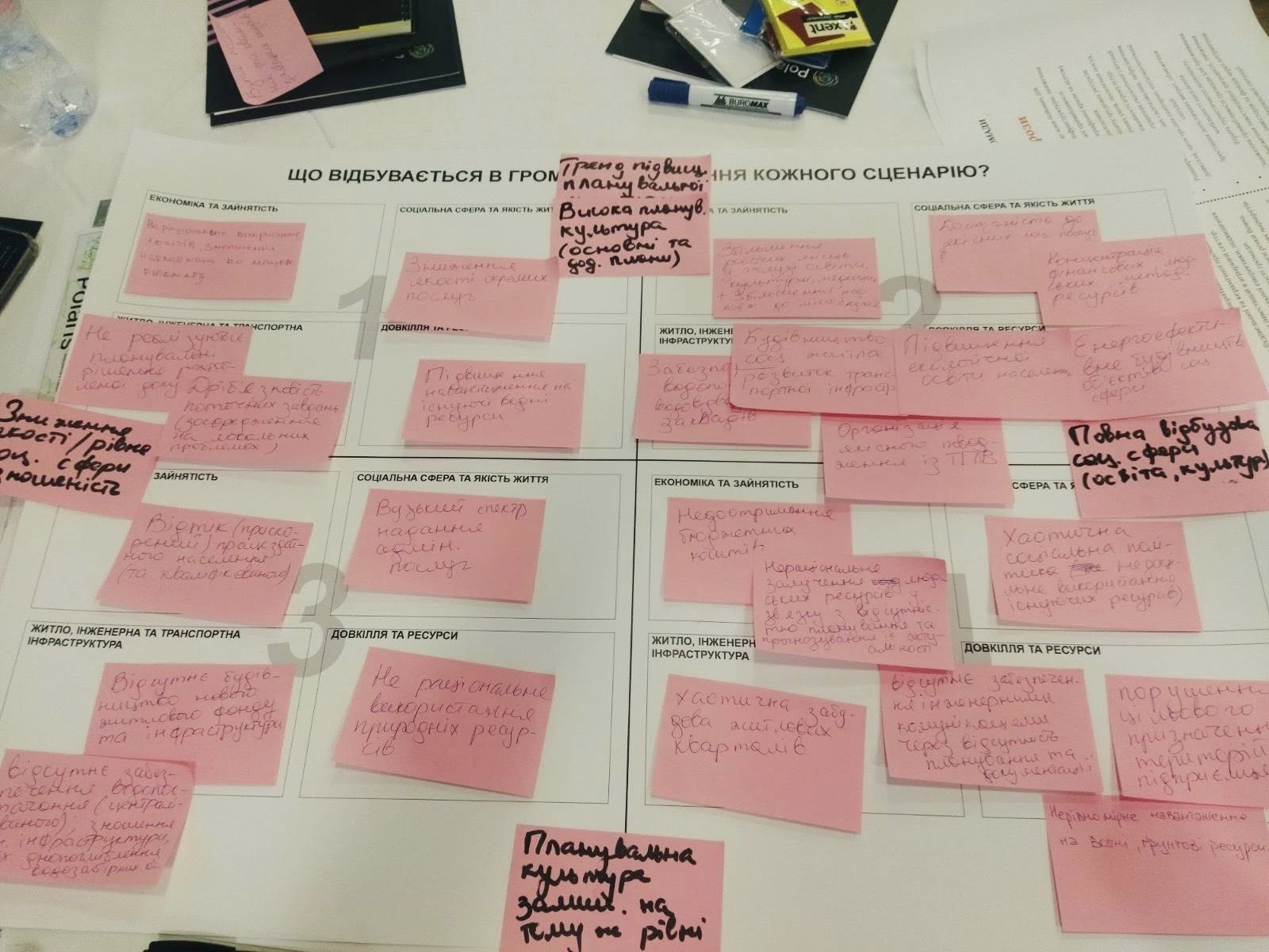 Протягом двох насичених днів команда Васильківської громади демонструвала високу залученість. Учасники активно працювали в групових сесіях, презентували результати попереднього аналізу, а також спільно напрацьовували стратегічні візії відновлення та визначали ключові напрямки подальшого розвитку. Сценарне планування дозволяє не лише прогнозувати, але й активно впливати на майбутнє громади.